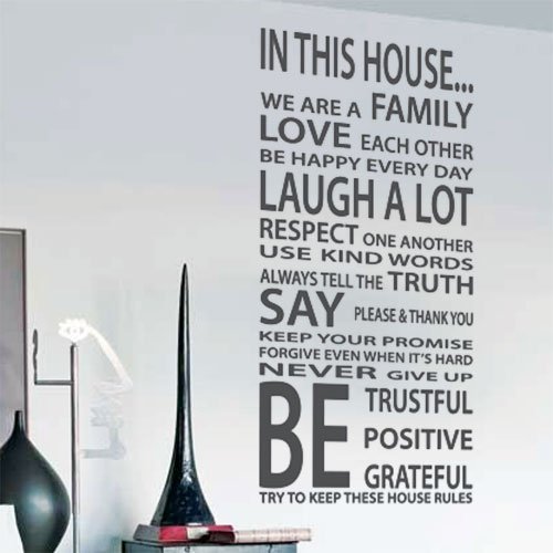Wandtattoo, Wandaufkleber, Motiv: Family House Rules Love, Wandsticker Studio, Matt, Vinyl, Schwarz, Wand, Naturromantisch, [...]