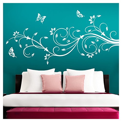 Grandora Wandtattoo XXL Blumenranken Schmetterlinge Blumen I weiß (BxH) 160 x 69 cm I Schlafzimmer Liebe Flur Wohnzimmer modern Aufkleber [...]