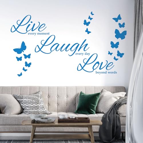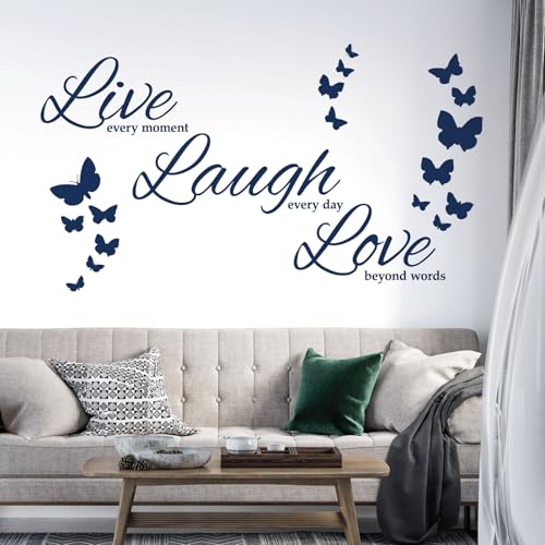 Wandtattoo mit Aufschrift Live every moment, Laugh every day, Love beyond words
