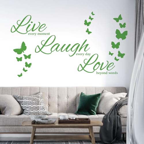 Wandtattoo Live every moment, Laugh every day, Love beyond words Text Size: XXLarge (1520 x 850mm) Grasgrün