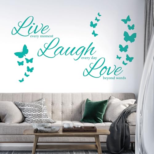 Wandtattoo mit Aufschrift Live every moment, Laugh every day, Love beyond words , Türkis