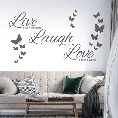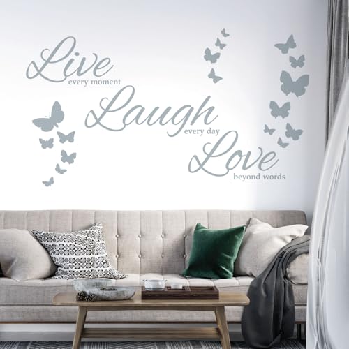 Wandtattoo / Wandaufkleber mit Aufschrift Live every moment, Laugh every day, Love beyond words