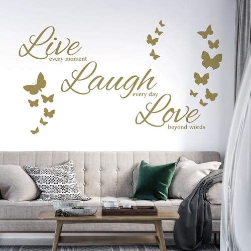 Wandtattoo Live every moment, Laugh every day, Love beyond words , goldfarben