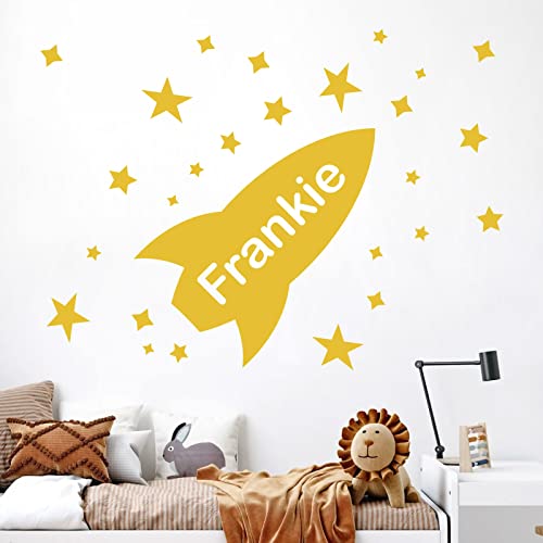 Wandtattoo Rakete mit Sternen – Jungen-Schlafzimmer personalisierbar Name [Sonnenblume]