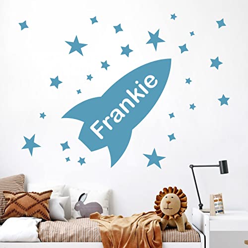 Wandtattoo Rakete mit Sternen – Jungen-Schlafzimmer personalisierbar Name [Himmel]