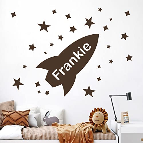 Wandtattoo Rakete mit Sternen – Jungen-Schlafzimmer personalisierbar Name [Schokoladen]