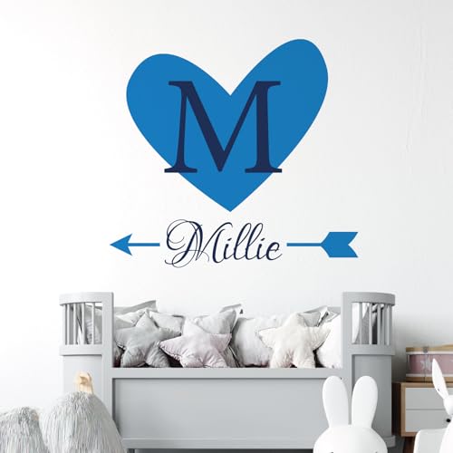 Wandtattoo mit Herz und Pfeil – personalisierbarer Name, Initial-Buchstabe, für Kinderzimmer, Schlafzimmer [Ozean]