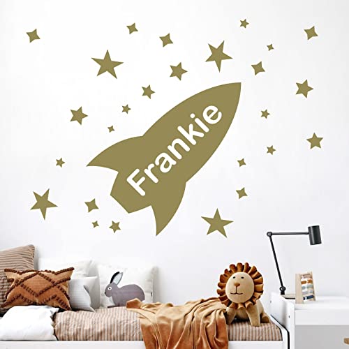 Wandtattoo Rakete mit Sternen – Jungen-Schlafzimmer personalisierbar Name [Gold]