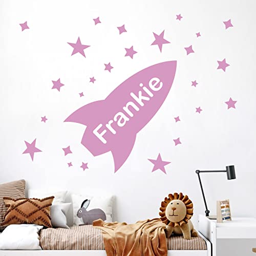Wandtattoo Rakete mit Sternen – Jungen-Schlafzimmer, personalisierbar mit Namen, Pink