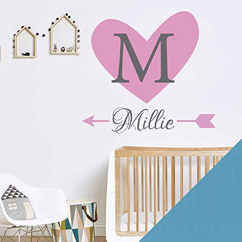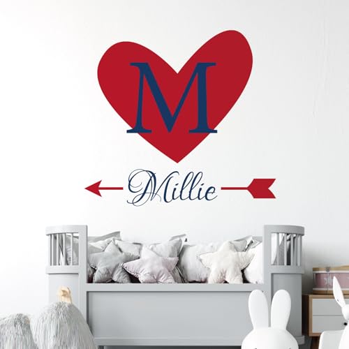 Wandtattoo mit Herz und Pfeil – personalisierbarer Name, Initial-Buchstabe, für Kinderzimmer, Schlafzimmer