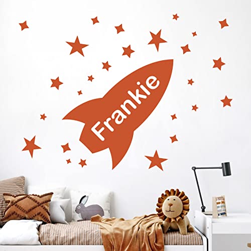 Wandtattoo Rakete mit Sternen – Jungen-Schlafzimmer, personalisierbar mit Namen, Orange