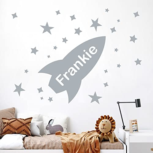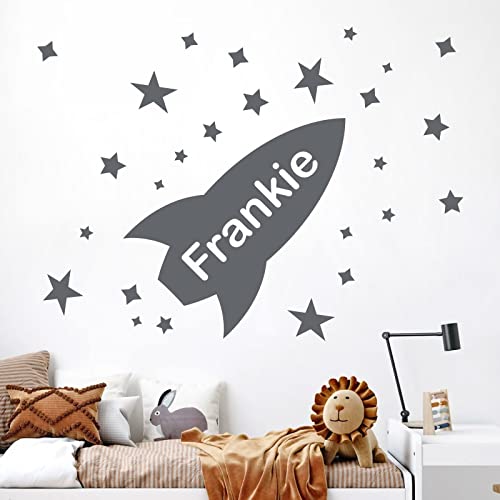 Wandtattoo Rakete mit Sternen – Jungenzimmer personalisierbar Name Wandsticker [dunkelgrau]