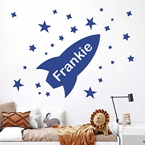 Wandtattoo Rakete mit Sternen – Jungenzimmer personalisierbar Name [Mittelblau]