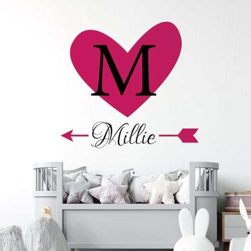 Wandtattoo mit Herz und Pfeil – personalisierbarer Name, Initial-Buchstabe, für Kinderzimmer, Schlafzimmer [Magenta]
