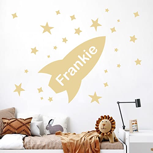 Wandtattoo Rakete mit Sternen – Jungen-Schlafzimmer personalisierbar Name [Creme]