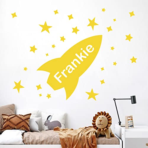 Wandtattoo Rakete mit Sternen – Jungenzimmer personalisierbar Name [Medium Gelb]