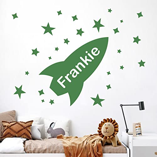 Wandtattoo Rakete mit Sternen – Jungen-Schlafzimmer personalisierbar Name [Wiese ]