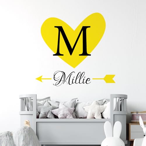 Wandtattoo mit Herz und Pfeil – personalisierbarer Name, Initial-Buchstabe, für Kinderzimmer, Schlafzimmer [Zitrone]