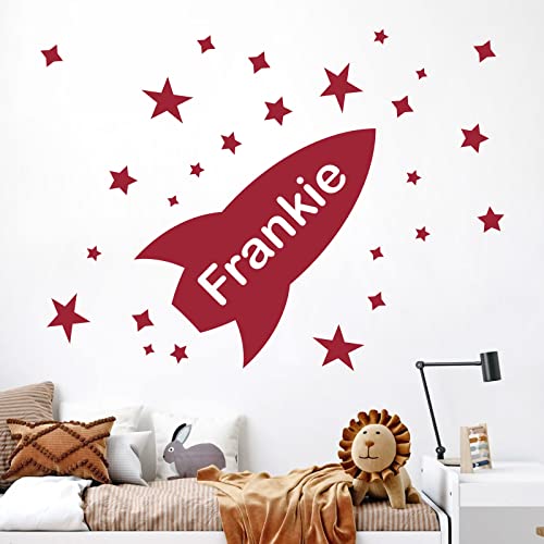 Wandtattoo Rakete mit Sternen – Jungen-Schlafzimmer, personalisierbar mit Namen, Burgunderrot