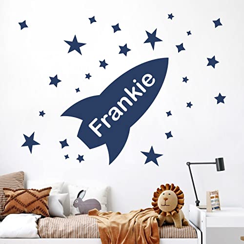 Wandtattoo Rakete mit Sternen – Jungen-Schlafzimmer personalisierbar Name [Ultramarin]