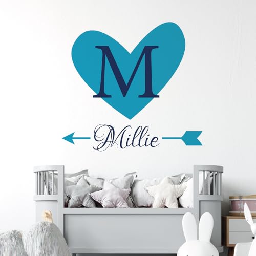 Wandtattoo mit Herz und Pfeil – personalisierbarer Name, Initial-Buchstabe, für Kinderzimmer, Schlafzimmer [Himmel]
