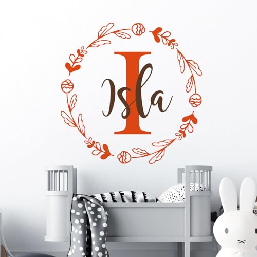 Personalisierter Name mit Initiale im Blumenkranz - Wandtattoo Kinderzimmer [orange]