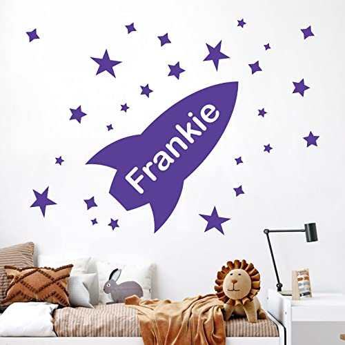Wandtattoo Rakete mit Sternen – Jungen-Schlafzimmer personalisierbar Name [lila]