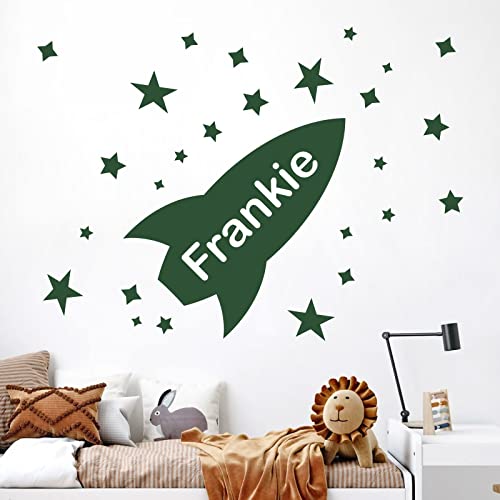Wandtattoo Rakete mit Sternen – Jungen-Schlafzimmer personalisierbar Name [Wald]