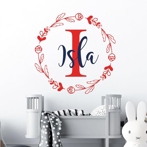 Personalisierter Name mit Initiale im Blumenkranz - Wandtattoo Kinderzimmer [Mohnblume]