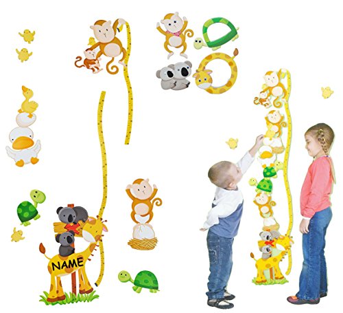 alles-meine.de GmbH XL - 3-D - Messlatte Giraffe und Affen incl. Namen - Wandtattoo selbstklebend mit 4 extra 3-D Stickern - Meßlatte für [...]