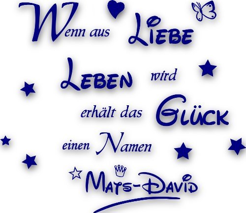 XL Wandtattoo mit Namen Ihres Kindes in Blau - fürs Kinderzimmer ~ Wandspruch: Wenn aus Liebe, Leben wird mit Krone und Sternen - [...]