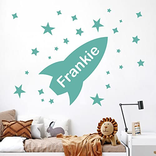 Wandtattoo Rakete mit Sternen – Jungenzimmer personalisierbar Name Wandaufkleber [Türkis]