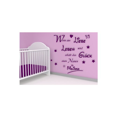 XL Wandtattoo mit Namen Ihres Kindes in Violett / Lila - fürs Kinderzimmer ~ Wandspruch: Wenn aus Liebe, Leben wird mit Krone und [...]