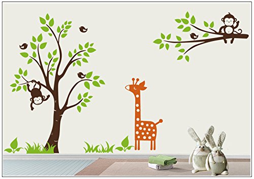 Deco-idea Wandtattoo wandaufkleber kinderzimmer Baum Vogel Giraffe AFFE wbm59