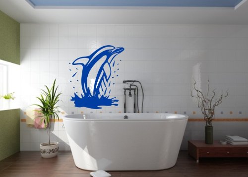 Wandtattoo Delfin Badezimmer Wandaufkleber Delphine Fisch / 30 kupfer / 55 cm hoch x 82 cm breit