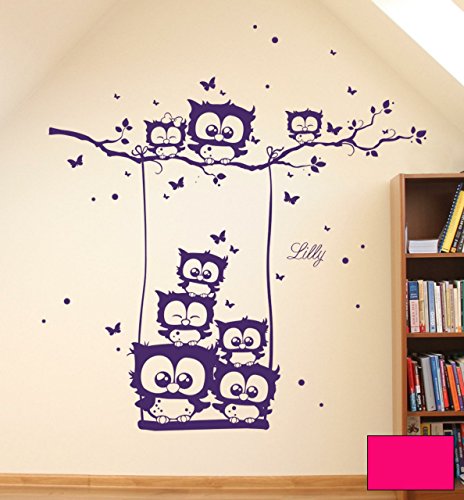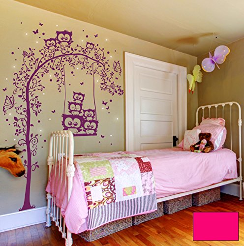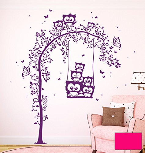 Wandtattoo Wandaufkleber Eulen Schaukel Schmetterlinge Eulenwandtattoo M1582 - ausgewählte Farbe: *Pink* - ausgewählte Größe: XL - [...]