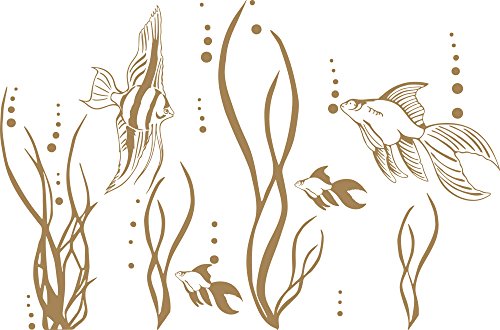 GRAZDesign Wandtattoo Bad Meer mit Fische | Aufkleber für Badezimmer | wasserfest - 61x40cm / 081 hellbraun