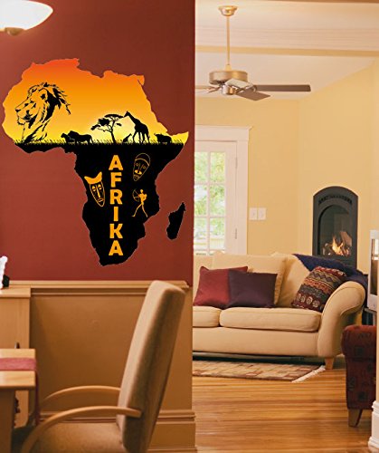 Wandsticker Nr.771 Kontinent Afrika, Größe: 58x65cm, Wanddekoration, Sticker Wandtattoo Africa Löwe Giraffe