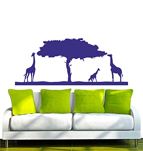 WANDTATTOO w559 Afrika - Steppe, Giraffe Wandaufkleber 96x39 cm blau - Dekoration Fensterfolie - Wandaufkleber - Kinderzimmer Wohnzimmer [...]