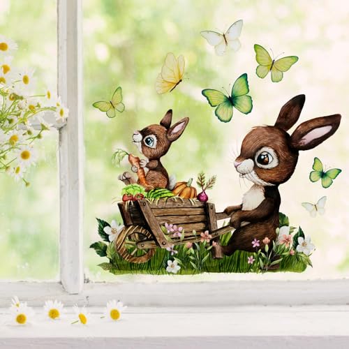 ilka parey wandtattoo-welt Fensterbild Hase mit Kind Hasen mit Schubkarre Schmetterlinge wiederverwendbar Fensterdeko Fensterbilder Ostern [...]