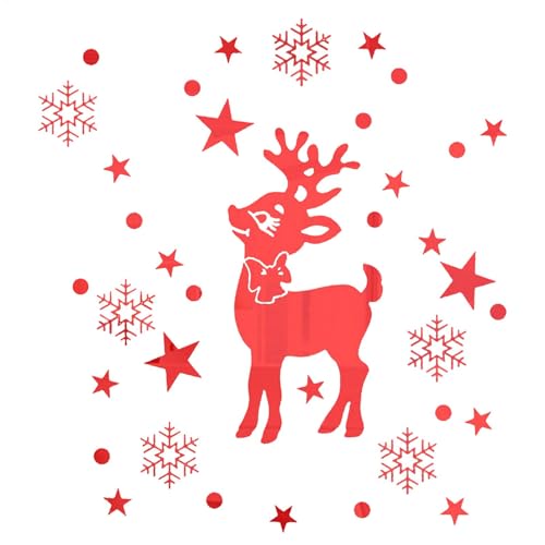 Hirsch-Schneeflocken-Aufkleber für Wände, Weihnachtstapete zum Aufkleben und Abziehen,Hirsch Schneeflocke Weihnachten Wandtattoo - [...]