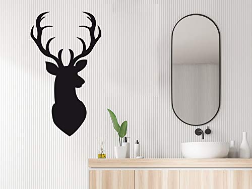 GRAZDesign Wandtattoo Hirsch Wohnzimmer, Hirschkopf Wanddeko Schlafzimmer, Wand Deko, Wandaufkleber, Geweih, 53x30cm (HxB), 070 schwarz