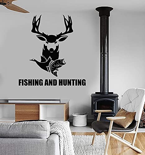 QIANGTOU Wohnkultur Vinyl Wandtattoo Angeln Jagd Fisch Hobby Hirsch Aufkleber Wandbild Art Deco Innen Tapete 73x78cm