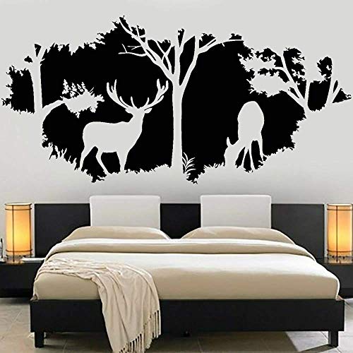 Natur Hirsch Tier Bäume Wandaufkleber Für Wohnzimmer Vinyl Wandtattoo Decor Home Interior Nordamerika Dekoration 27X57 Cm Schwarz