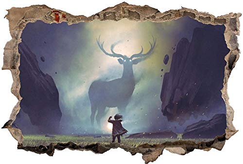 3D Wandtattoo Mauerloch Wandsticker Wandaufkleber Durchbruch selbstklebend Schlafzimmer Wohnzimmer Kinderzimmer,Hirsch Geist Riese Mädchen [...]