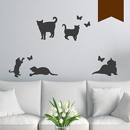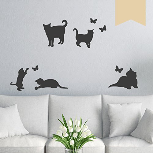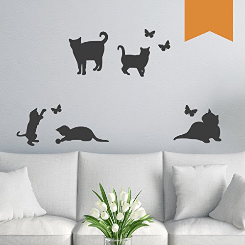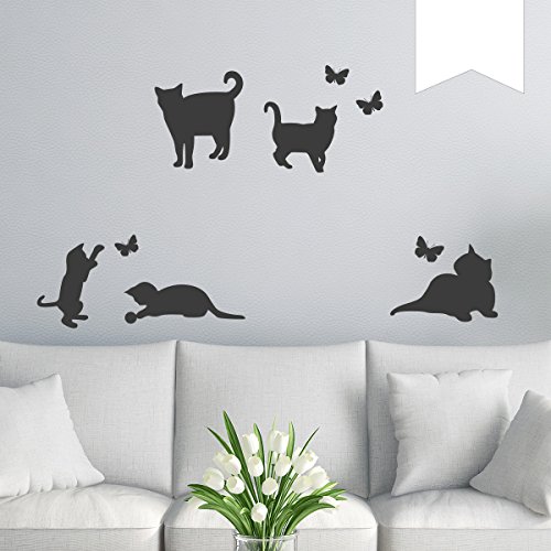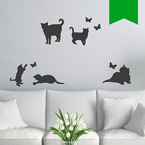 Wandkings Wandtattoo, 5 Katzen mit 4 Schmetterlingen im Set - Farbe und Größe wählbar