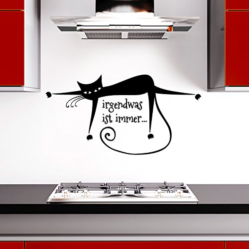 WANDTATTOO-GÜNSTIG-FFO G068 Spruch Irgendwas ist Immer + Katze Wandaufkleber Wandsticker schwarz (BxH) 58 x 30 cm