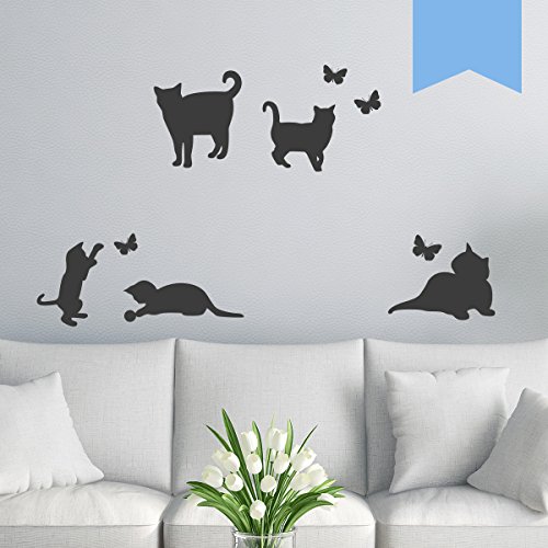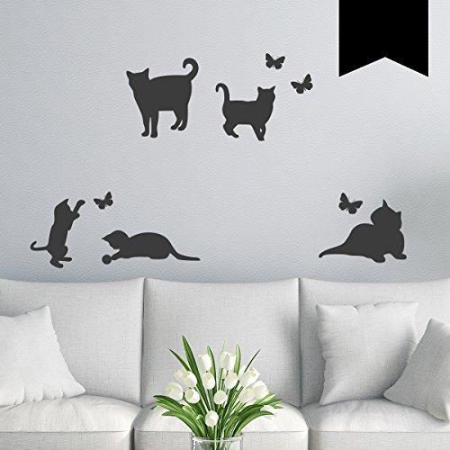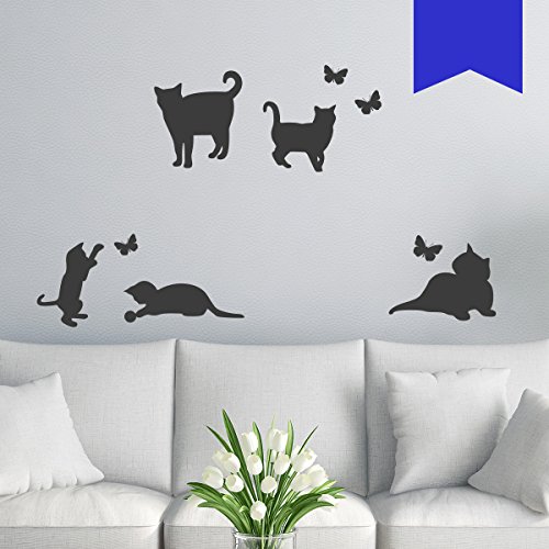 WANDKINGS, 5 Katzen 4 Schmetterlingen im Set Farbe Größe wählbar