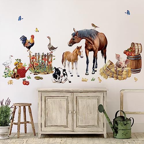 wondever Wandtattoo Bauernhof Wandaufkleber Bauernhoftiere Pferde Kuh Hahn Wandsticker Wanddeko für Küche Wohnzimmer Esszimmer