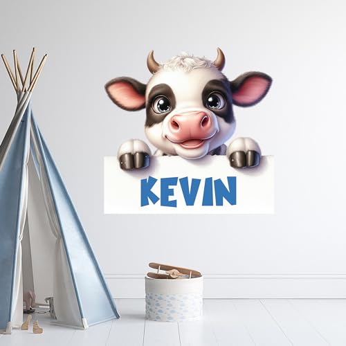 GRAZDesign Wandtattoo Kuh mit Namen personalisiert, Wandaufkleber Kinderzimmer Türaufkleber Schrank Aufkleber selbstklebend - 58x57cm